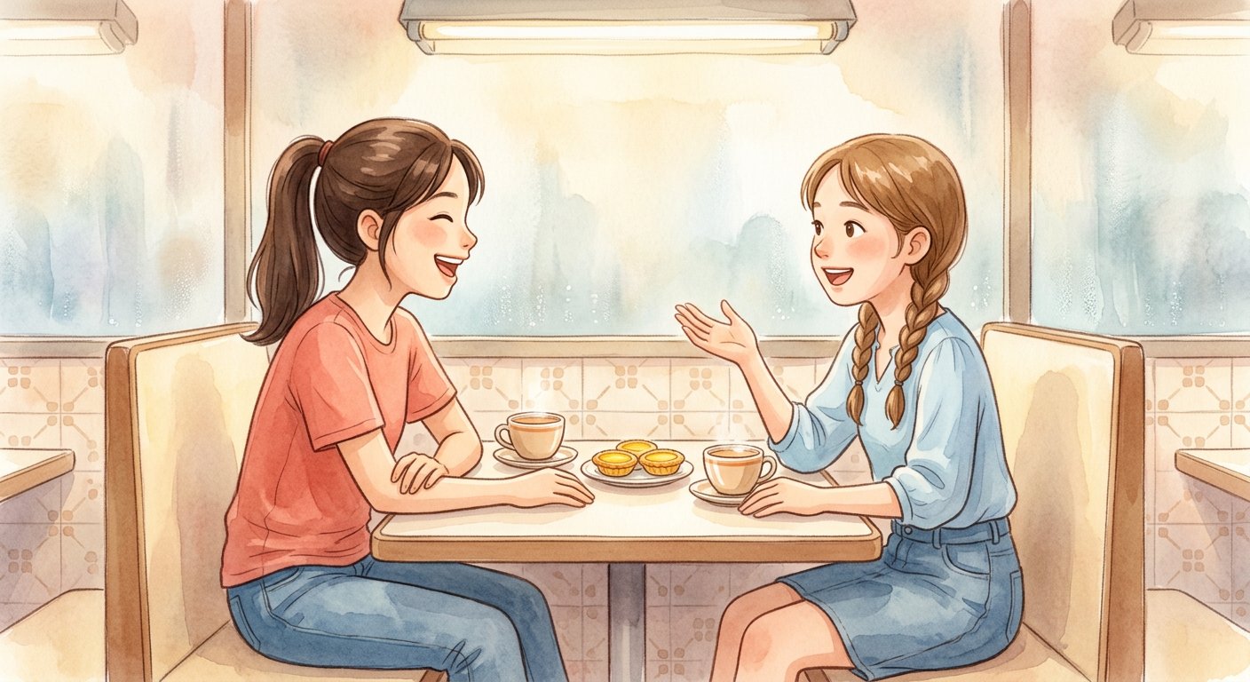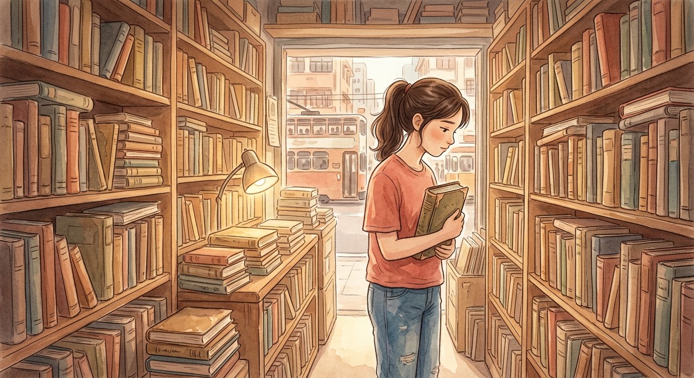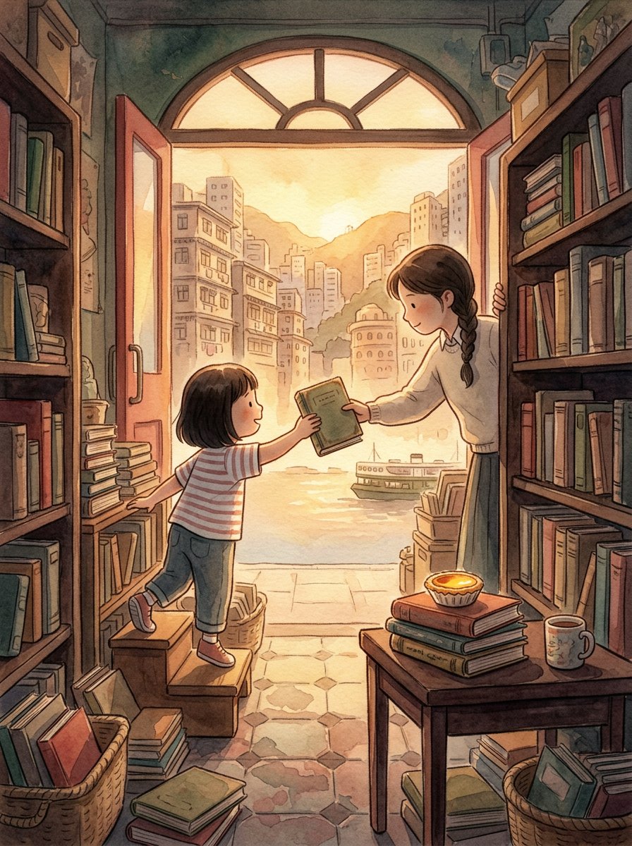 桌上擺着兩杯奶茶和一碟蛋撻。小晴的家人剛搬回香港,而她第一個去的地方,就是那間舊書店。