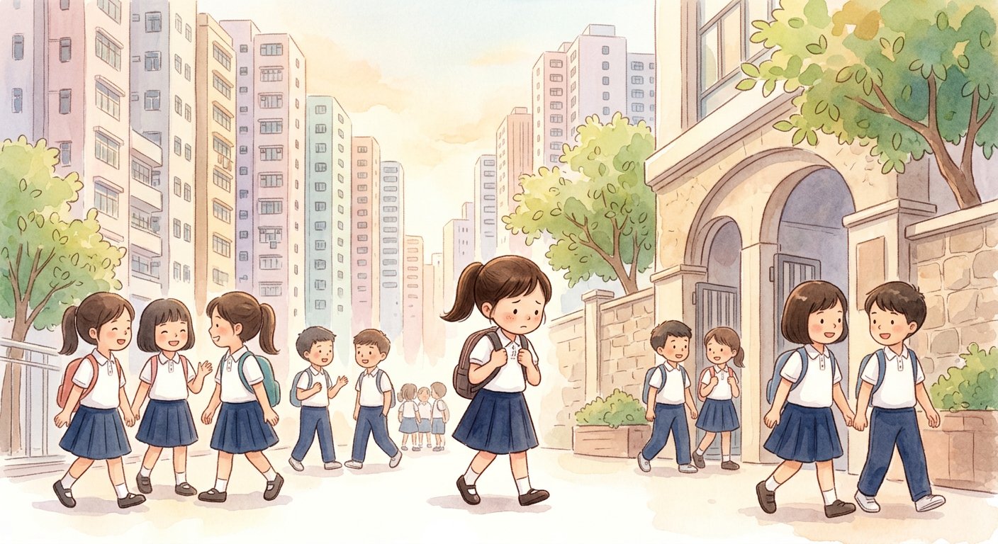 小雅背着書包,走進了一間陌生的學校。