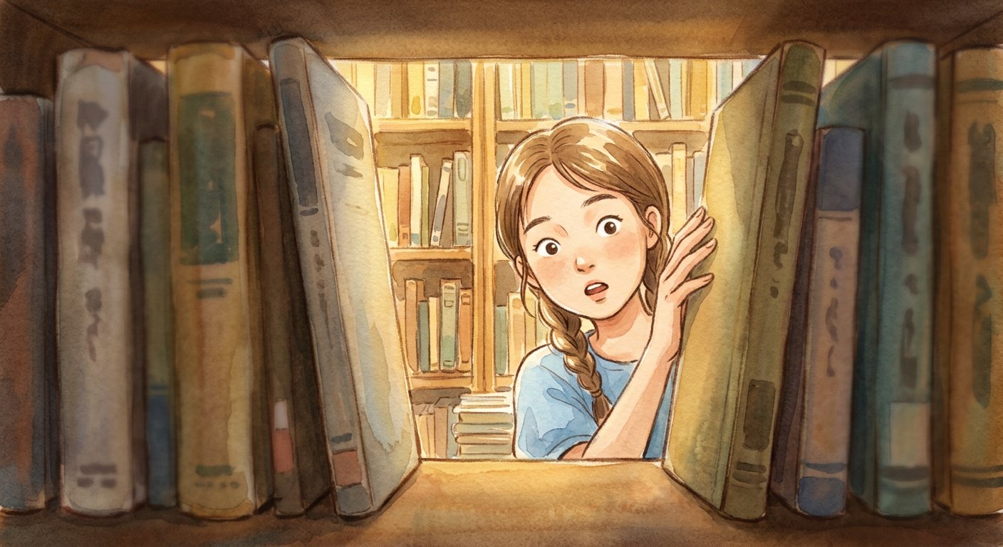 透過書本之間的縫隙,她看見了對面——